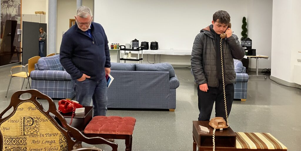 February 2026: I Just Called 2026 opens as part of ArtsCare’s PRIME exhibition at the Museum Gallery at Mossley Mill, Newtownabbey. Exhibition runs until 05 March 2026. This new version has four stations, each with a vintage telephone seat and a modified telephone. Each station has a unique set of messages.